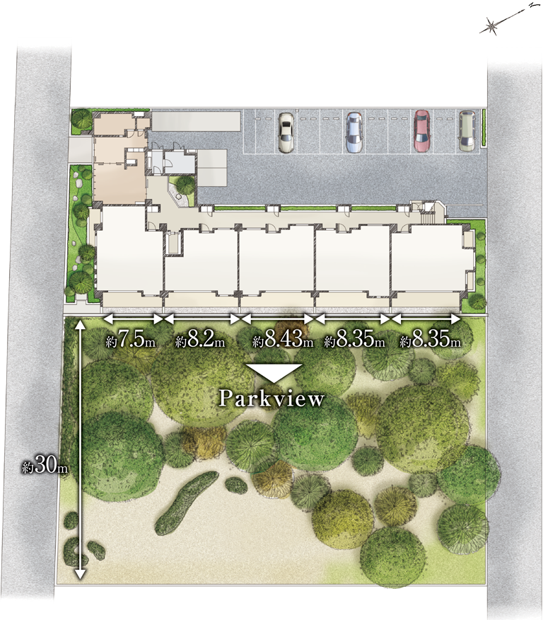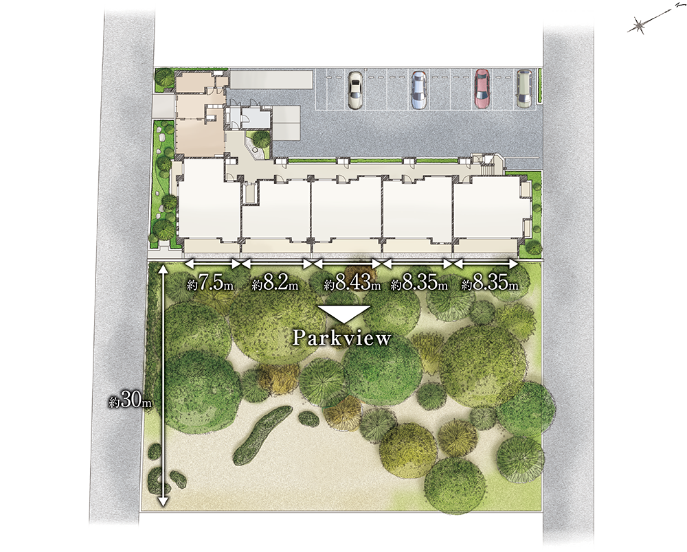 プランニングで全邸パークビューを実現しました。