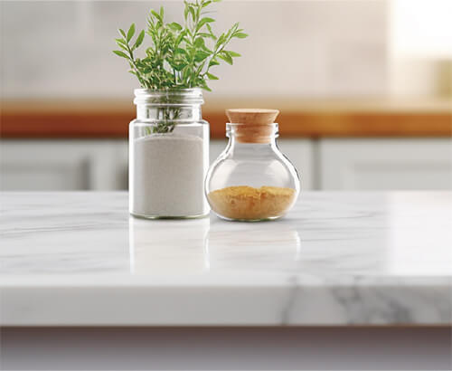 標準装備ダイニング・テーブルとして利用できるカウンターテーブルを設置。(D・Eタイプ除く)キッチン天板と同じ人工大理石を採用し、色や質感を統一することで空間の一体感を演出します。