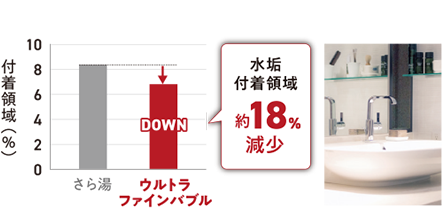 ウルトラファインバブルを含んだお湯によって水まわりの汚れや水垢が付きにくくなり、